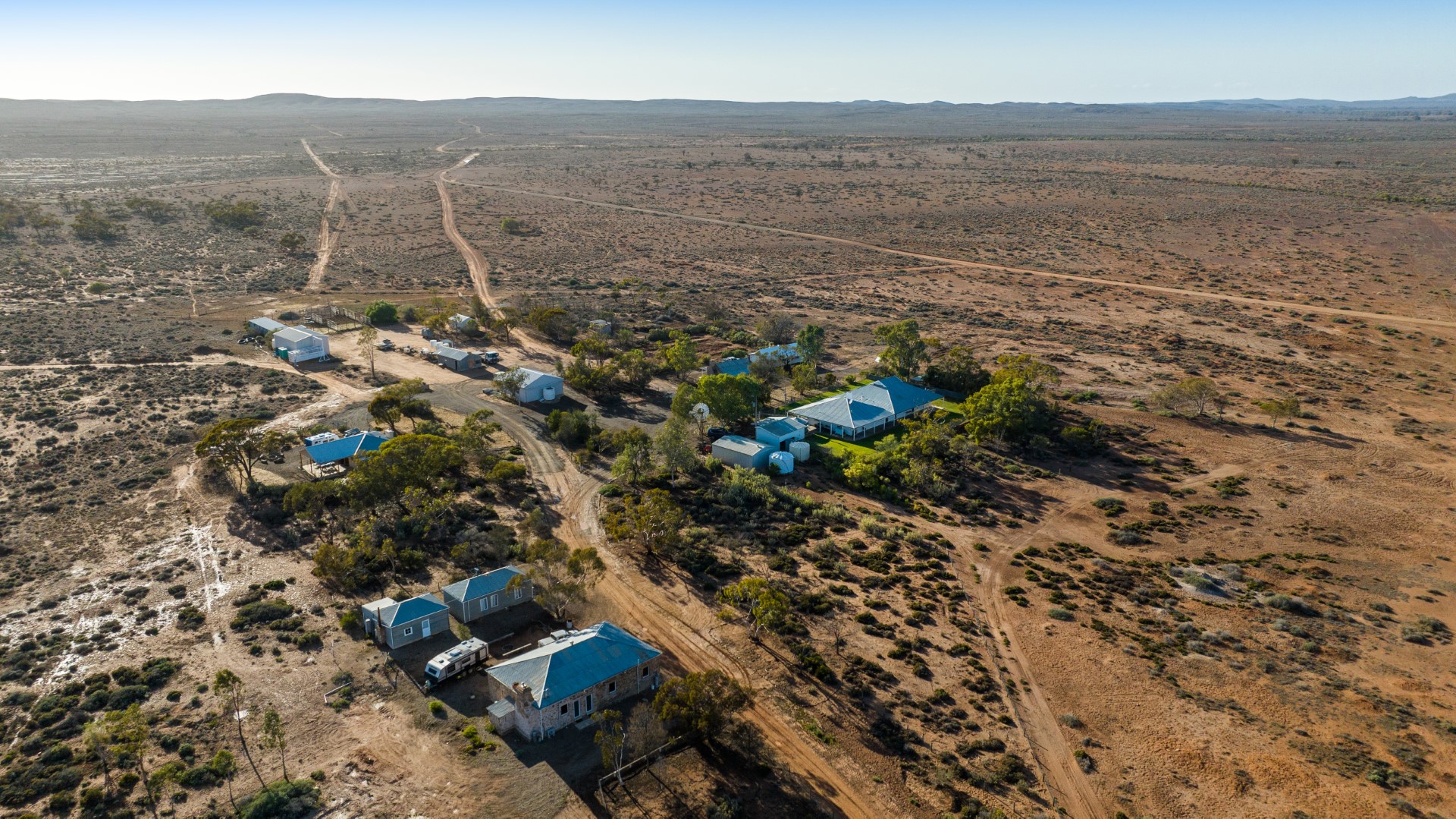 •Extensive renovated building improvements including a five-bedroom homestead, luxury two bedroom cottage, renovated shearers quarters with deluxe en-suite queen bedrooms, 2-bedroom workers cottage, shearing shed, three secluded campsites, all with architecturally designed ablutions and two with historic stone huts, workshop and more.