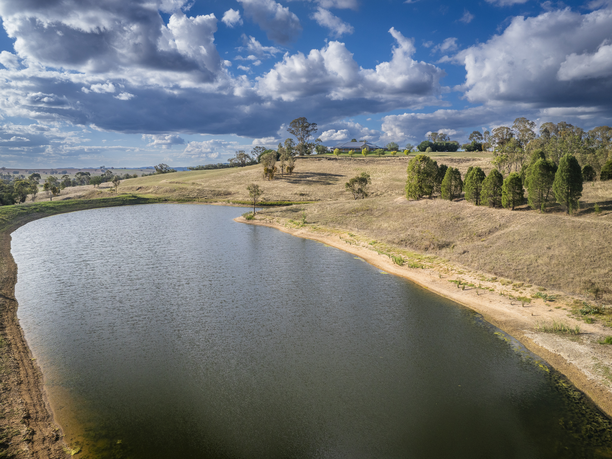 Accommodation: Significant c1998 4‑bed, 2‑bath double brick rendered homestead (515* sqm) with separate 1‑bed studio set in established gardens overlooking the olive groves and water storage