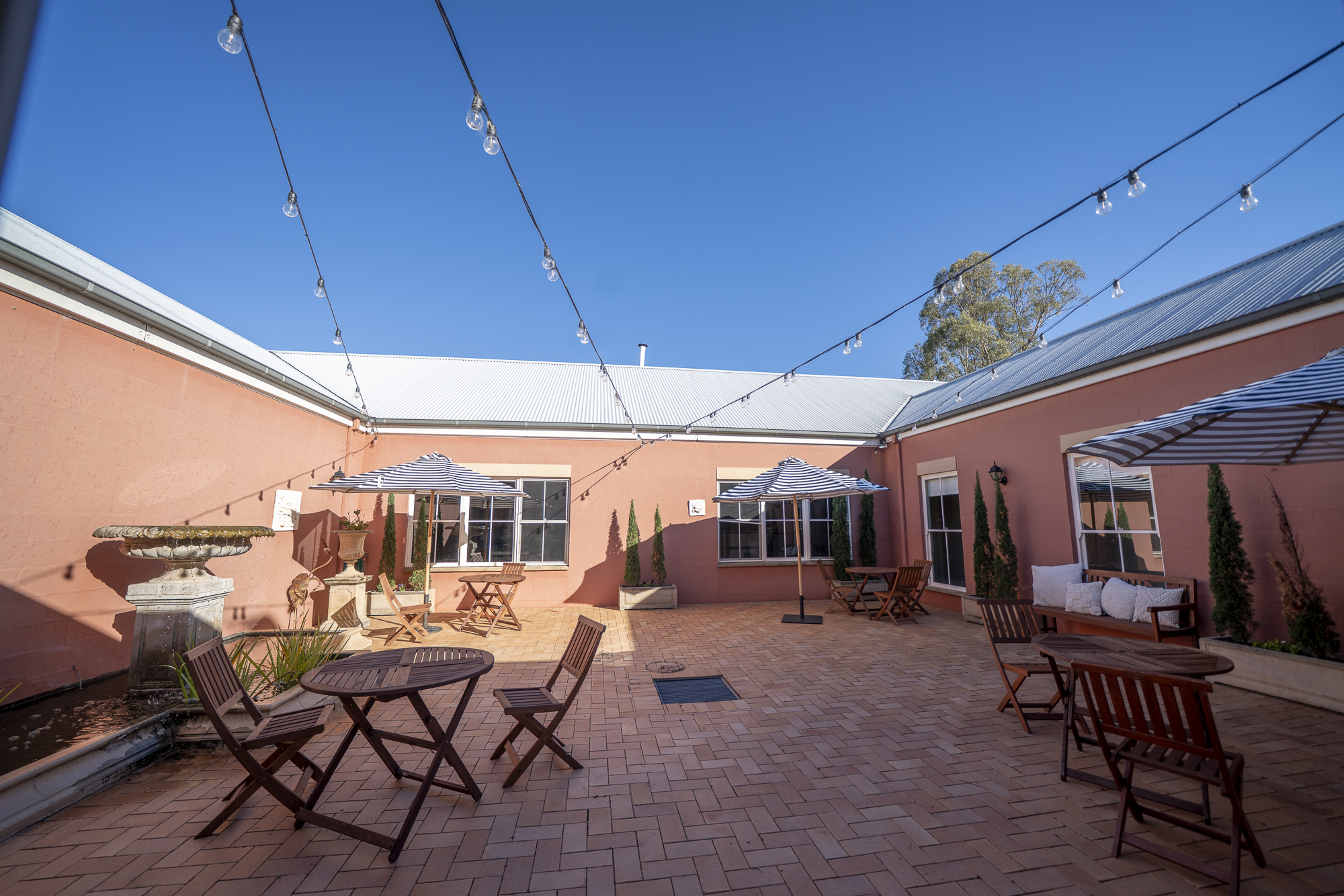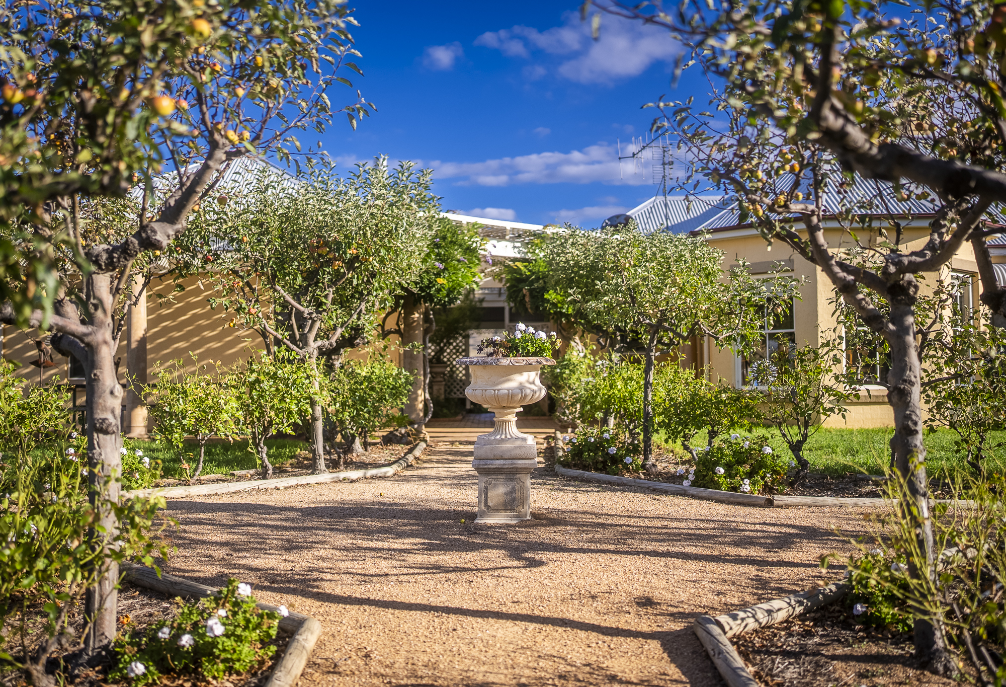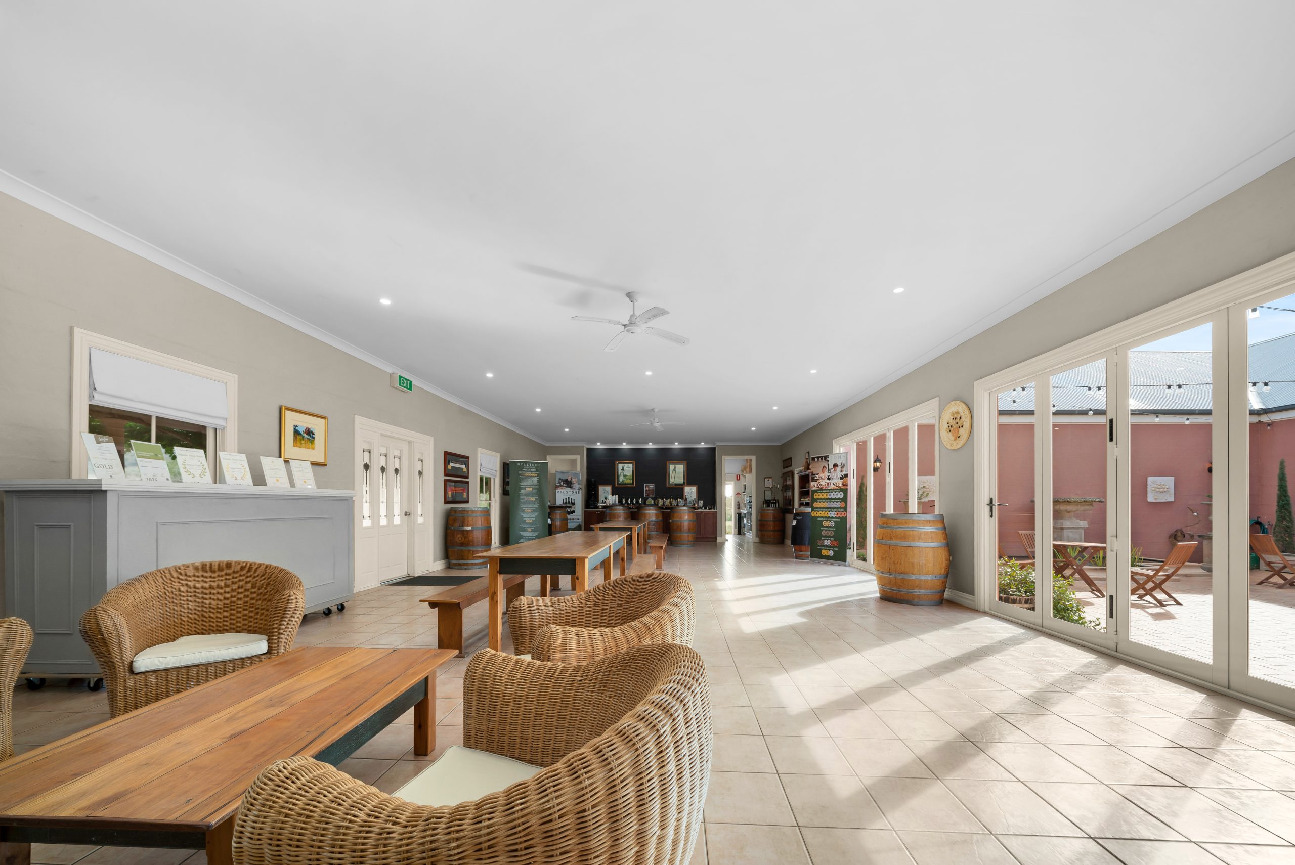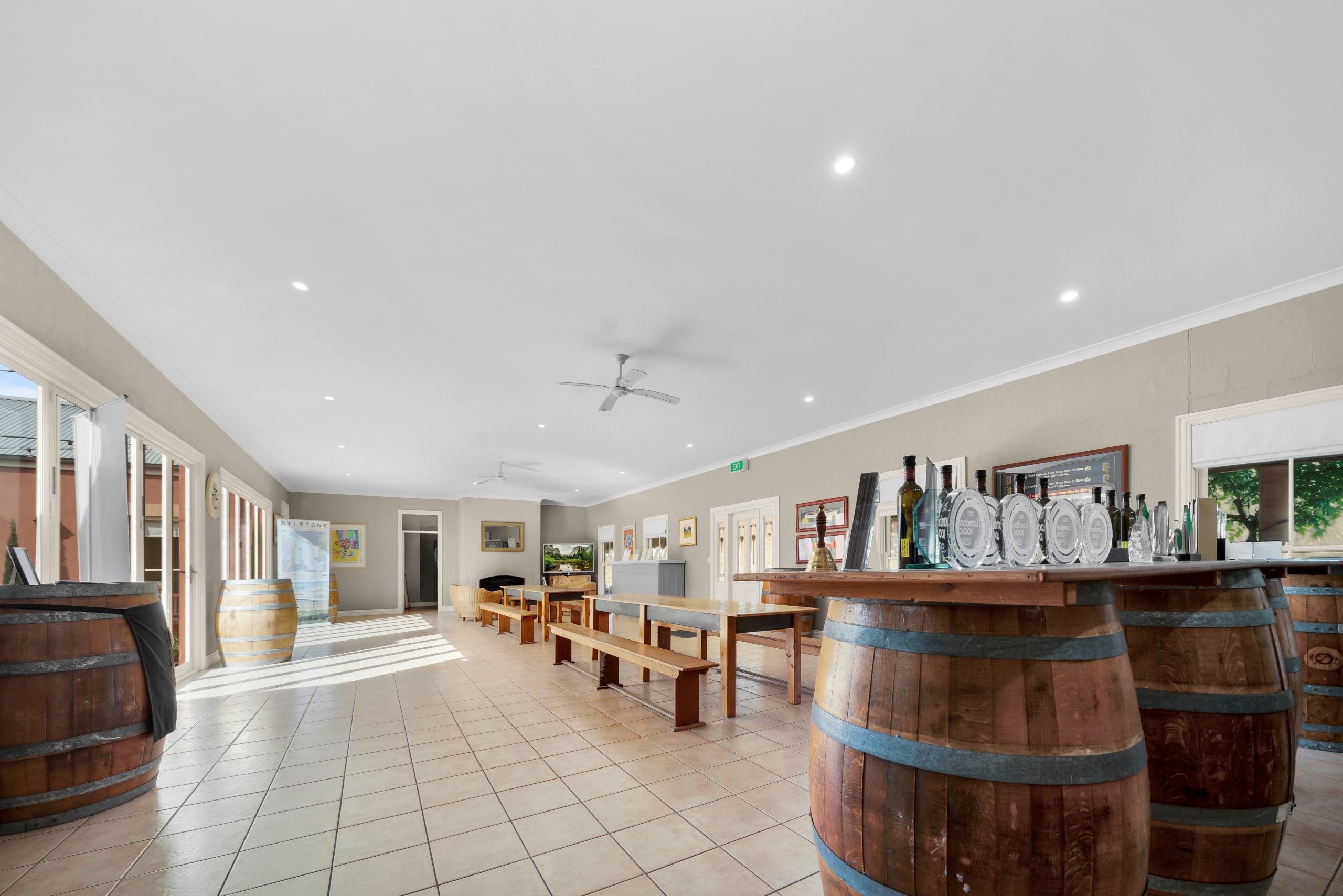 Cellar Door & Functions: Mediterranean-style venue with commercial kitchen, laboratory, courtyards and verandahs.