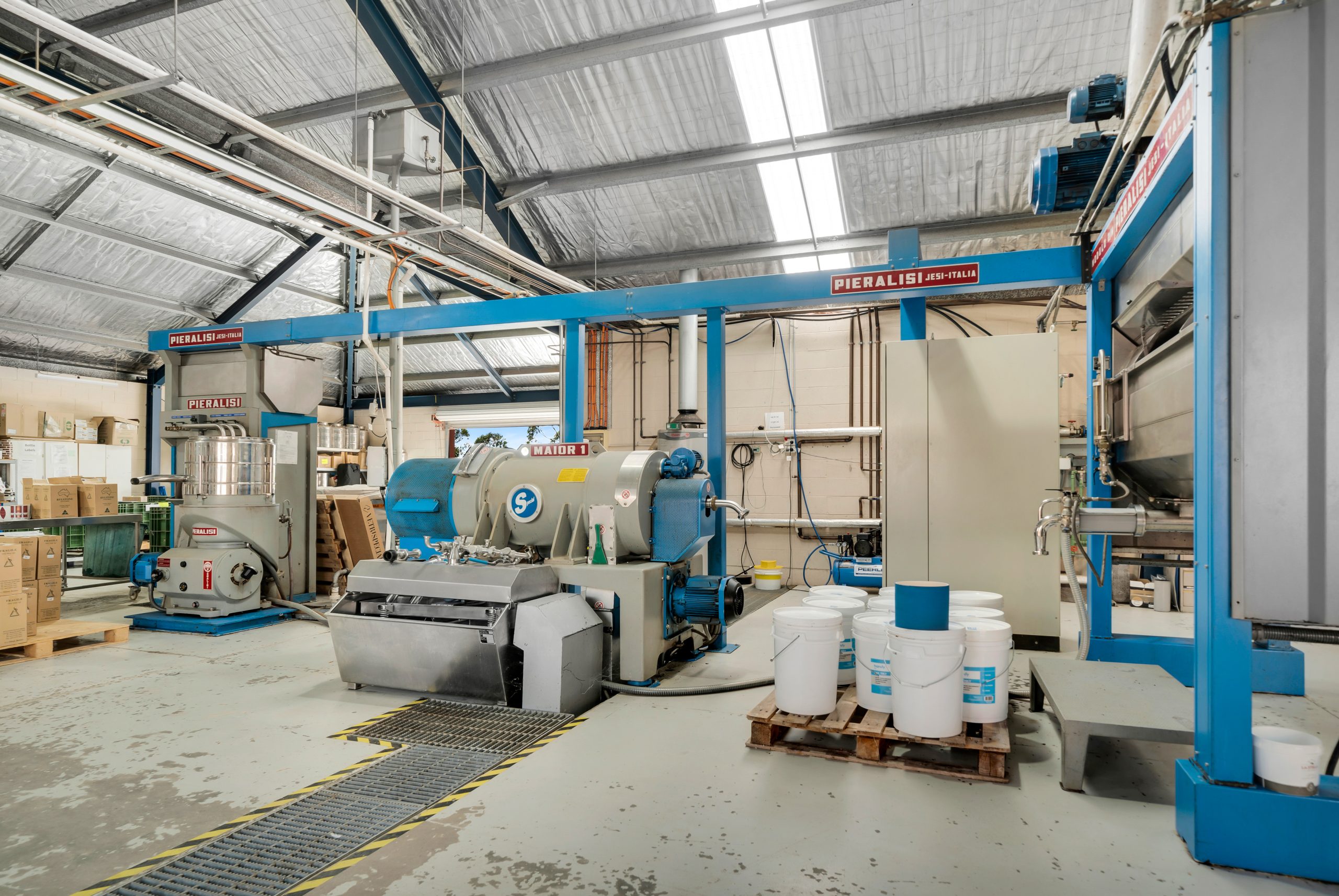 Productivity: 60* tonnes to 300* tonnes olives harvested per annum, Pieralisi continuous extraction plant 1.2* t/hr; stainless storage 60,000L*; bottling and packaging on site.